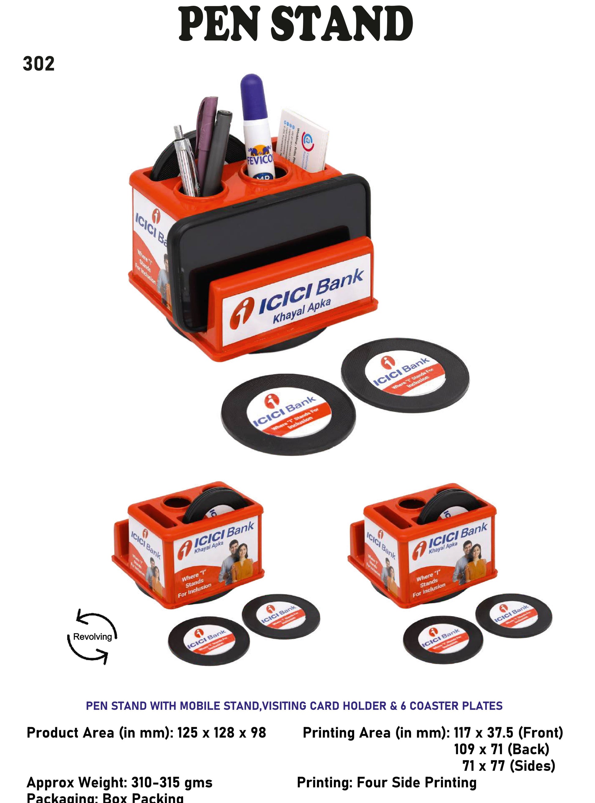 Pen stand with Mobile Stand, visiting card holder and 6 coaster plates (Red)