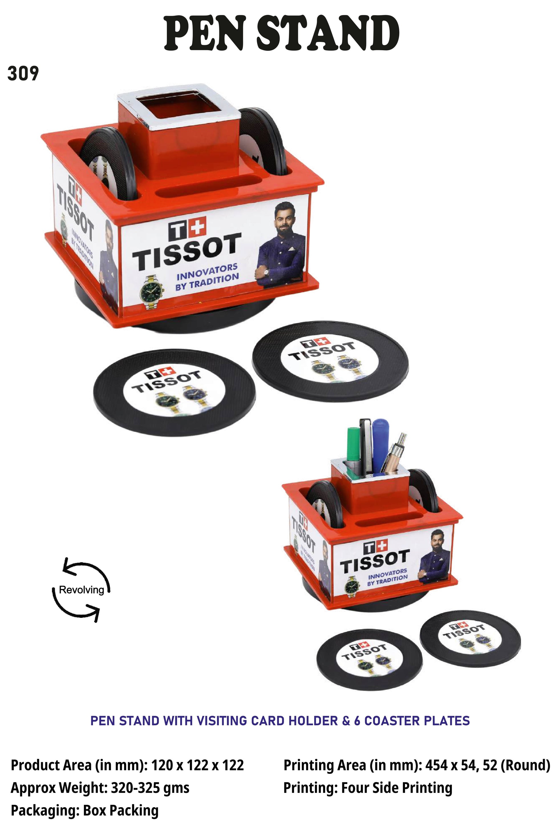 Pen stand with visiting card holder and 6 coaster plates (Red)